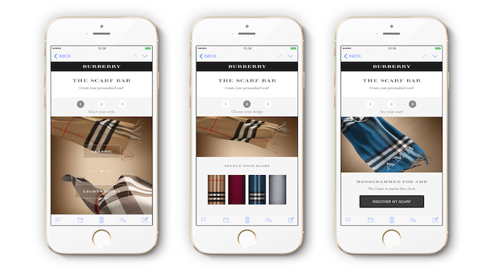 Burberry have used a number of tricks, and pieces of clever tech, to provide an incredibly personalised email. The bulk of the Burberry email is built using the ‘checkbox hack‘. This is an advanced bit of HTML and CSS, which works only in modern email clients such as those used on iOS. What they have done incredibly well is craft their HTML well enough to provide an elegant fallback for the email clients, such as Gmail, which don’t support such advanced features.