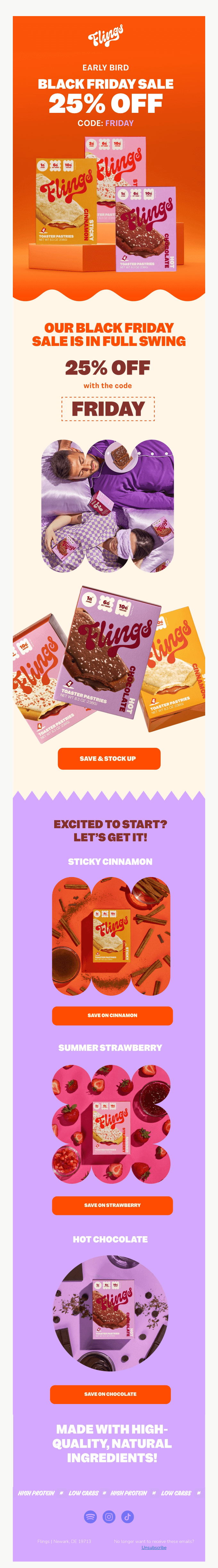 Flings is a healthy snack brand that came up with a nice little email that was sent before Black Friday to all of its subscribers.