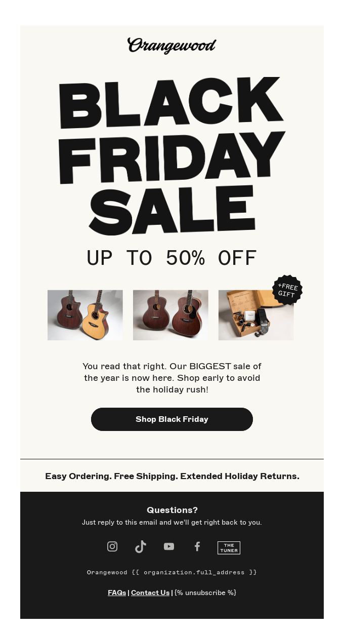 This email is from Orangewood, a guitar brand, and if you want to see a rather simple Black Friday, this is it.