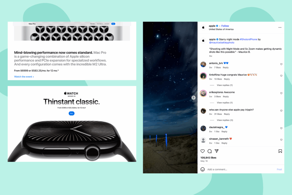 Apple’s tone of voice and marketing is entirely different from Ryanair and Netflix. The communication is always clear, concise, and focused on how its products empower users. Their tone feels stylish and highlights their values of elegance and new ideas.