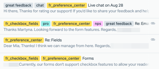 Finally, all we had to do was design processes that would make our work efficient, timely and meaningful. We started tagging feature requests (useful for reporting to our product team and announcing new launches), introduced a queue management process to prioritise urgent issues and conversations with Pro users (as priority support is one of the perks of our Pro plan) and streamlined all user-related communications with the rest of the team to make sure we can solve all issues, including the technical ones, on time.