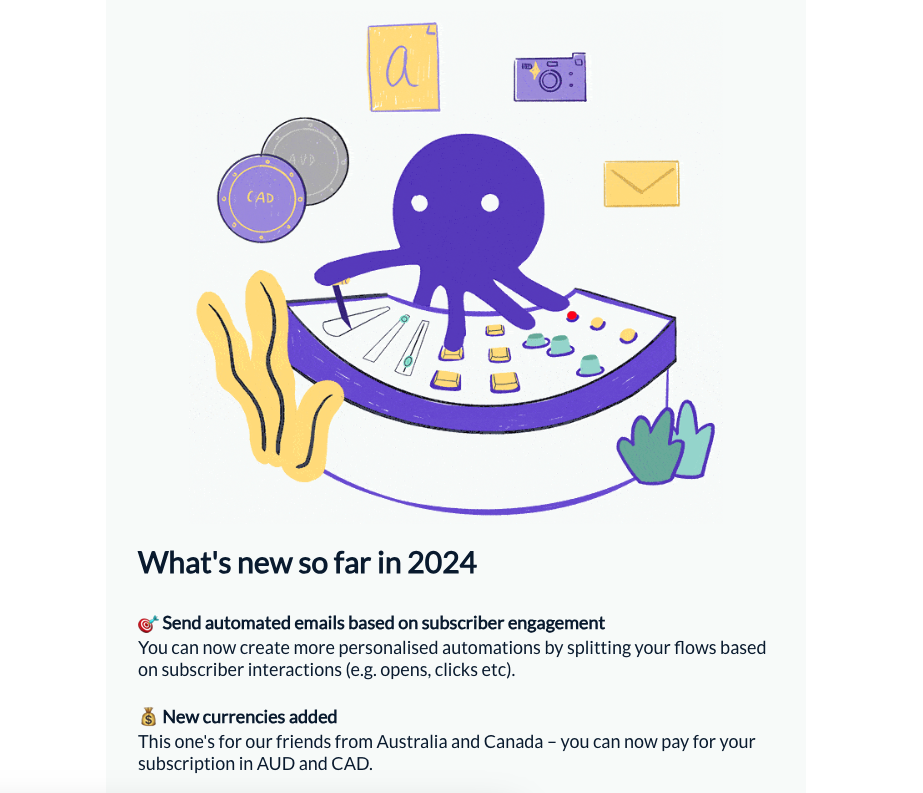 People also need to know the product they’re using, especially if it’s changing along the way (and they’re long past the onboarding phase). We address it by sending our monthly newsletters, where we announce new features, share best practices and inspire users with case studies. We also make sure to follow up with anyone who specifically requested a certain feature, and we often showcase it to existing users with a dashboard message.