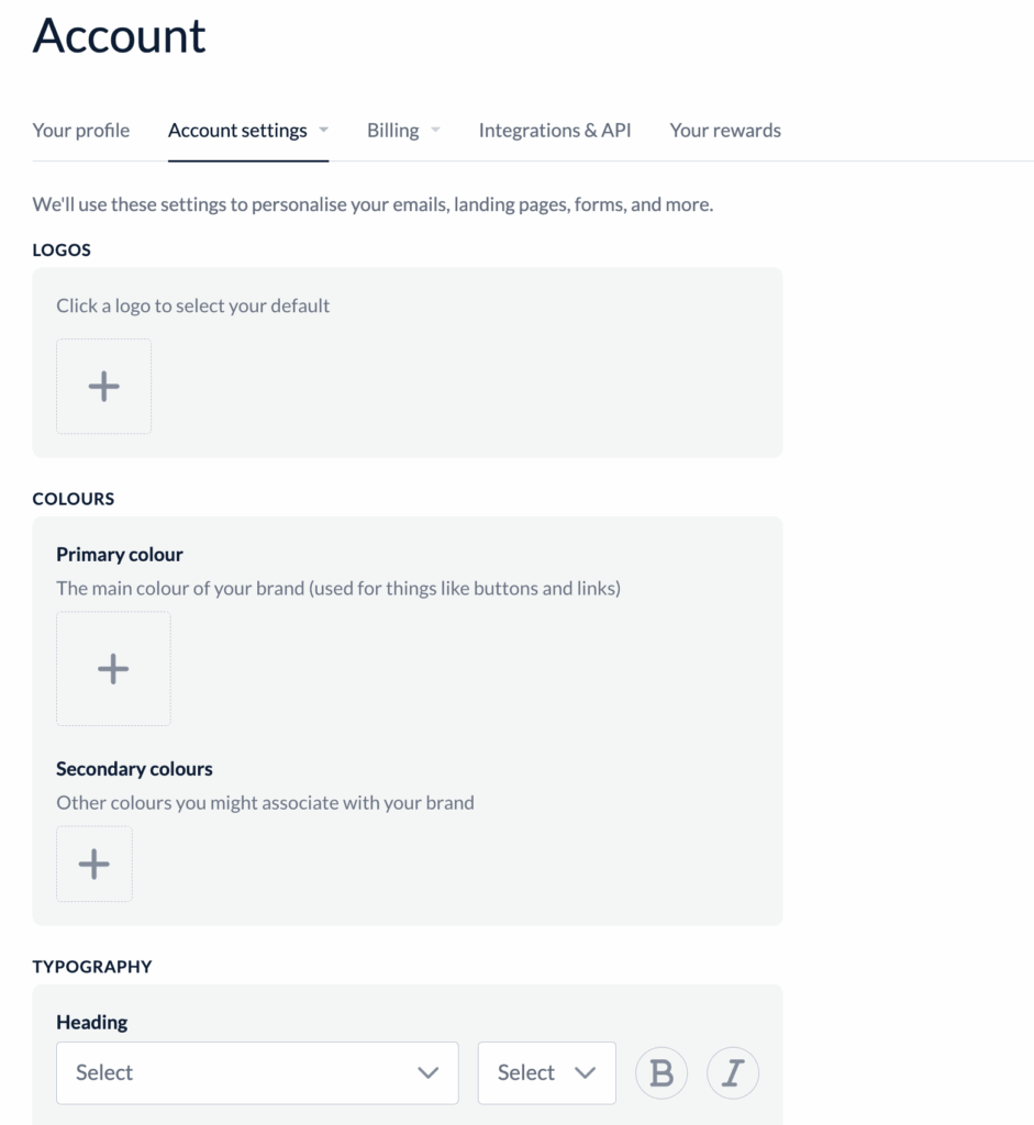 Now, while using our email automation templates is a straightforward feature, the prerequisite here is to set up your brand on the EmailOctopus dashboard first. The system uses this data to customise the email template designs based on your brand design guidelines.