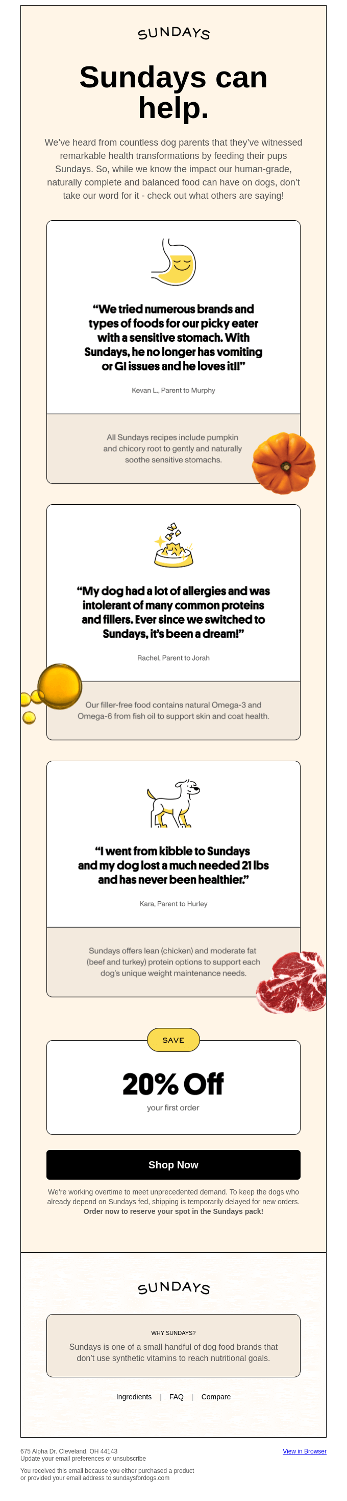 Include customer reviews or testimonials in your emails. Pair these with highlighted features or address common doubts. For example, next to setup information, add a quote like, “A customer said, I had it up and running in minutes!”