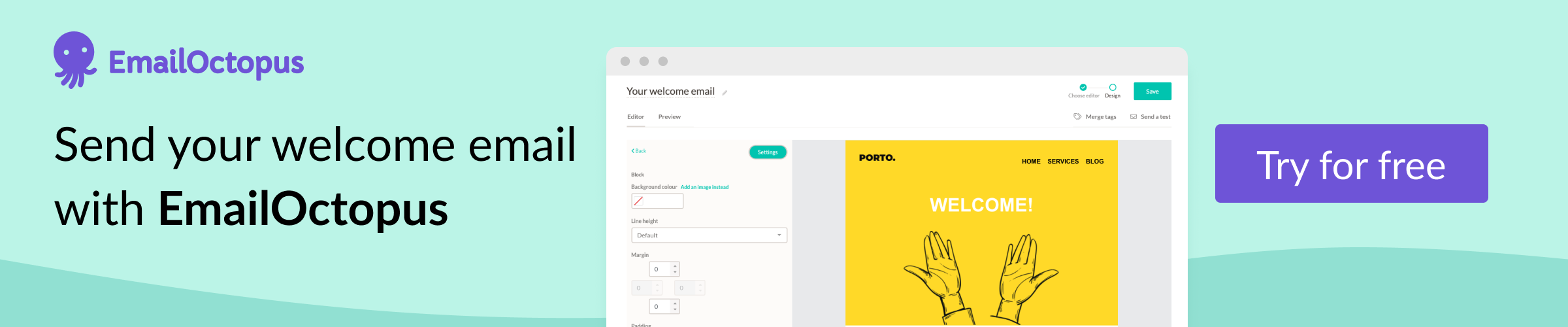 And with EmailOctopus, a welcome email is quick and easy to set up as an automated workflow. So there’s really no excuse for not having one in place.