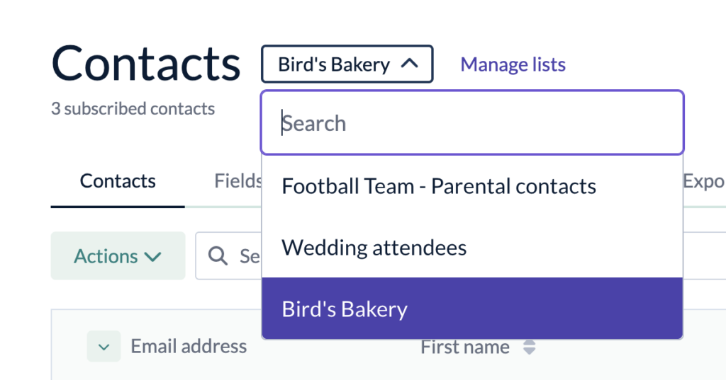 This makes it easy to switch between them when needed – it contains exactly the same information as the old Lists screen, with a subscriber count and list name. And if you want to view all the lists on a single page, this can be done from Manage lists. We’ve just hidden it away a bit, as we recognise most users won’t need this anymore.
